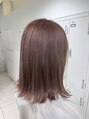 ブリーチ2~3回以上必須、モーヴピンクベージュカラー♪明るめで透明感たっぷりのピンクベージュがオシャレで可愛いカラー(^^)肩につくくらいの外ハネボブとの相性も抜群です♪【髪質改善カラー】【髪質改善】