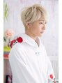 ニュアンス感ある毛先の動きで立体的に仕上げたメンズラフミディ。個性的なハイトーンでも、やわらかで優しい印象に。外国人風にアジャストしたホワイトアッシュカラーで周囲をリード。濡れ感あるウェットショート、アップバングやオールバックもセクシー。