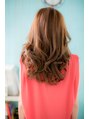 フリルのようなたっぷりのレイヤーカールで、大人スイートな色香をオン。サイドにしっかり流した斜めバングで、顔周りをスッキリさせることで、クールさもブレンド。甘くなり過ぎない、大人女子にピッタリの上品ニュアンスロング。オフィスにもバッチリです。
