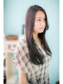 グラマラスな素髪感が引き立つ、ボリューミーなシルキーロング。ヌーディカラーでも、しっとり潤うツヤ感で重くならないのが◎。顔に少しかかるようなサイドの流れで大人びた表情に☆ノームコアなスタイルに飽きたら、斜めバングやセンターパートで変化を♪