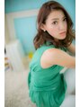 明るいブラウン系カラーに、鎖骨ラインのくびれカールで、健康的な色気あるモテミディスタイルに♪流しバングで表情をチラ見せしても、耳かけでスッキリ見せても大人カワイイ。レイヤーの入ったふわミディスタイルなので、エアリーでフェミニンな雰囲気です。