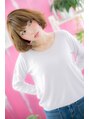首元で重なり合ったカールがふんわりボリューミー。洗いっぱなしみたいなドライな質感がエアリーでリラクシーなスイートカジュアルボブ。Aラインのシルエットでフェミニンにしつつも、明るいカラーで健康的に。顔周りのワンカールで華やかな雰囲気になります