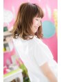 作り込み過ぎないニュアンスカールがラフで優しい雰囲気を実現。厚めバングをオンすることで、ラブでガーリーな印象になりぐんとポップに♪透明感あるツヤカラーで顔周りを明るくすれば、親しみやすい愛されふわミディの完成です。耳かけも似合います。