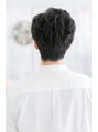 好感度大の黒髪ショート。ニュアンスパーマで全体的にボリュームをつけ、トップはふわっと立ち上げてスタイルアップ効果。アップバングにすることで重くなり過ぎず、爽やかな男前スタイルに。ビジネスシーンではオールバックにイメチェンもカッコイイ!