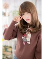 目の上ギリギリの厚めバングとローレイヤーの重めスタイル。内巻きワンカールでふんわりさせて顔周りを華やかにし、ツヤ感あるミルクティカラーでリッチな雰囲気に仕上げました。フェイスラインに沿った毛流れで小顔見せも♪姫カットで旬顔にしてもカワイイ。
