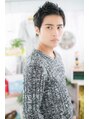 黒髪&アップバングで男らしさ全開に決めた爽やかマッシュショート。七三に分けて立ち上げ、濡れ感を出したウェットショートでイケメン仕上げに。多毛の方はサイドのツーブロックで毛量調節を。髪が伸びてきたら、ニュアンスパーマをかけて動きを出すのも◎
