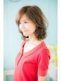 やわらかなラウンドフォルムと、シフォンのようなふわふわのカールで、女子力満開のフェミニン鎖骨ミディに。サイドに流した斜めバングと顔周りを包み込むカールで小顔効果もバッチリ。ツヤ感あるヌーディカラーは光を反射して顔もキレイに見せてくれます。