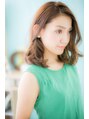明るいブラウン系カラーに、鎖骨ラインのくびれカールで、健康的な色気あるモテミディスタイルに♪流しバングで表情をチラ見せしても、耳かけでスッキリ見せても大人カワイイ。レイヤーの入ったふわミディスタイルなので、エアリーでフェミニンな雰囲気です。