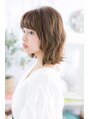厚めの斜めバングとふんわりパーマでトップにボリュームを持たせ、耳下のくびれカールでキュッと引き締めたひし形シルエットに。毛先の外ハネカールでラブカジュアルに仕上げたウルフスタイル。ベージュカラーやグラデーションカラーでグラマラスにしても◎