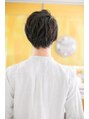 スタイリッシュで男らしい爽やかさ漂うアップバングショート。七三&デコ出しでスタイリッシュに。フロントからバックに流れる毛流れがセクシーでドキっとします。サイドのさりげない刈り上げでスッキリ見せて清潔感も。毛量の多い方にもオススメです。