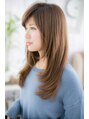 顔周りのレイヤーで、ナチュラルなワンカールストレートを華やかに格上げ。斜めバングを合わせて、フェミニンでグラマラスな印象に。頬にしだれ落ちる毛流れが、アンニュイな雰囲気を醸しつつ、輪郭をカバーして小顔に見せてくれます。耳かけも大人かわいい。