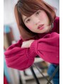 斜めバングと内巻きワンカールのノームコアなナチュラルボブ。清楚でフェミニンな雰囲気のスタイルにパンチの効いたレッド系カラーをオンすることで、個性的でスポンテニアスな甘辛ミックスボブにイメチェン。フリンジバングと合わせて旬顔に。耳かけも◎