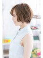 明るめカラーとひし形シルエットで華やかでガーリーなショートボブに。耳横のふわっとしたくせ毛風カールで小顔に見せます。斜めバングで目力UP。耳かけしたり、厚めバングやオン眉で個性的にしても大人かわいい。似合わせカットでとびきりキュートに♪