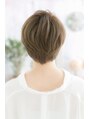 大人フェミニンなナチュラルショート。シンプルなスタイルほど似合わせカットの技が光ります。斜めバングで目力強調して、前下がりラインで輪郭カバーして小顔に。ベージュカラーで明るく仕上げれば、女性らしい仕上がりに。ショート初挑戦の方にもオススメ!