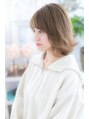 コンパクトにまとめたナチュラルミディは、ハイトーンカラーと外ハネミディでラブカジュアルな印象に。ボブやマッシュショートからの伸ばしかけにもオススメです。ベージュカラーやミルクティカラーで顔周りを明るくし、斜めバングで目力UP!美人度上昇です♪