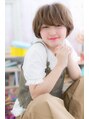 目の上ギリギリのトップからの厚めバングがポイント。目元を印象付けてぐっと目力UP☆くせ毛風カールを活かしつつ、ボリュームを抑えてスッキリ小頭フォルムに仕上げているのでスタイルUP効果も◎明るいベージュカラーとゆるふわカールでとびきりガーリーに♪