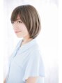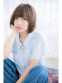 コロンをお顔を包み込む丸みフォルムが大人かわいい♪ナチュラルボブ。目の上ギリギリの斜めバングで目力強調&前下がりラインで輪郭カバーして小顔見せ!似合わせカットの技で、シンプルスタイルで美人顔に格上げします。スッキリ耳かけも大人かわいい♪