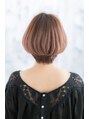 耳横にふんわりボリュームを持たせたAラインボブ。頭の形をキレイに見せて前下がりラインで小顔に仕上げます。肌が明るく見えるピンクブラウンやピンクラベンダーのハイトーンカラーで垢抜けた印象に。個性的なラブガーリースタイルで周囲と差を付けて。