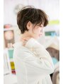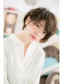 ラフな質感のエアリーカールで、無造作なのに色っぽいフェミニンショートに格上げ。長めの斜めバングで目元を印象付けて目力UP。丸みフォルムでやわらかな雰囲気にして、360度どこから見てもキレイな美シルエットに。耳かけも大人かわいいノーブルショート。