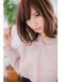 エアリーなニュアンスカールとピンクカラーで笑顔の似合うフェミニンなモテ髪に。ツヤカラーで肌を明るく美肌に斜めバングで目元を印象つけて目力UP、サイドの毛流れで輪郭カバーして小顔に・・・美人顔を作る要素が詰まっています。耳かけもお大人かわいい♪