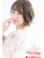 目の上ギリギリの斜めバングで目元を印象付けつつ、シースルーバングで軽さを出してやわらかな雰囲気に♪くせ毛風カールのフェミニンボブでラブガーリーに仕上げました。耳かけしたり、厚めバングやオン眉で個性的にしてもGOOD。モードな黒髪も大人クール。