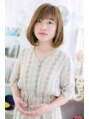 毛先のワンカールと前下がりラインで小顔に見せたナチュラルミディ。切りっぱなしボブのようなラフ感と明るいベージュカラーで、ラブカジュアルな印象に☆オン眉や厚めバングで個性的ガーリーにしたり、センターパートで大人クールにイメチェンもOK♪