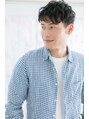 ふわっとしたニュアンスパーマでトップにボリュームを持たせ、スタイルアップを狙った無造作ショート。セミウェットな質感と、目元を印象つけるサイドパートで、男の色気を演出。オンでもオフでも使えるビジカジショート。好感度大の黒髪がオススメ!