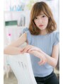 肩のラインで揺らめく、くせ毛風のとろみカールがふんわり大人かわいい愛されセミディ。斜めバングで目力強調し、ふわっとした毛流れで小顔に見せて美人度UP!明るいベージュカラーをオンしてグラマラスなモテ髪に仕上げれば、街の視線集中間違いナシ!