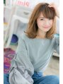 ラフな質感の中に女性らしさがキラリ☆顔周りの毛束が頬を包み込んで小顔見せを叶えてくれます。斜めバングで目力UPさせ、リラクシーなくせ毛風カールで抜け感あるおしゃれなふわミディに。ランダムなくびれカールで色っぽく決めて。耳かけも大人かわいい。