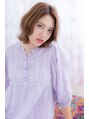耳横にふわっとボリュームを持たせたひし形シルエットで輪郭キレイな美人顔に。センターパートが大人かわいい。毛先は肩のラインの外ハネカールでラブカジュアルな印象に。フェミニン&ガーリーのミックススタイルで好感度UP。耳かけしても似合います。