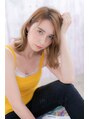 ラフかわいいブロンドカラー無造作くせ毛風カールa
