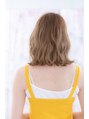 ハイトーンのグラデーションカラーとくせ毛風カールでラフな外国人風質感に仕上げた無造作ふわミディ。アシンメトリーなヘアアレンジで輪郭カバーして小顔見せ。耳かけやかきあげもイメチェンできてGOOD。ナチュラルボブや前下がりボブからの伸ばしかけに◎