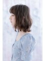 肩ラインの外ハネカールでカジュアルに、結いてほどいたようなくせ毛風カールでラフな雰囲気に仕上げたフェミニンミディ。透明感カラーで清潔感を保ちつつ、ラブカジュアルな印象に仕上げて好感度UP。ベージュカラーやマーメイドアッシュで肌色キレイに。