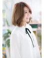 大人っぽさとオシャレ感を演出できるノーバングミディ。ハンサムでカッコイイ印象になりがちなスタイルでも、毛先のワンカールとミルクティカラーでふんわり甘い雰囲気にすれば、クールな中にフェミニンさが漂うモテスタイルに♪甘え顔が似合いますよ☆