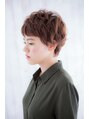 ショートバングが印象的な個性的マッシュショート。ボーイッシュショートは、ニュアンス感ある動きと明るい温感ヘアカラーで、やわらかな雰囲気に。オシャレ度UPのスタイリッシュスタイルに格上げ♪くせ毛風のランダムカールをつけたベビーショートも旬!