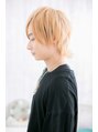 外国の子供みたいなハイトーンでやんちゃな雰囲気に。目立ち度もモテ度もオシャレ度もバッチリです。長めの斜めバングで目元を印象付けて目力UP。サイドパートもカッコイイ。サイドの毛流れで輪郭をカバーしてスッキリ小顔。ネオウルフでセクシーに決めます。
