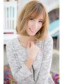 重めスタイルになりがちなワンレンロブは、ハイトーンxワンカールx斜めバングで垢抜けた印象に。前下がりでフェイスラインをカバーして小顔に見せ、目の上ギリギリのシースルーバングで目力UP!肌色を明るく綺麗に見せつつ、グラマラス&ガーリーに格上げ!