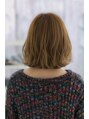 派手なイメージになりがちなハイトーンカラーは、くせ毛風のゆるいカールでラフ&リラクシーな雰囲気に仕上げてやわらかな空気感を演出。小顔に見えるAラインシルエットでラブガーリーに♪斜めバングや厚めバングで目力強調したり、耳かけも大人かわいい。