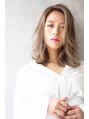 切りっぱなしのロブベースにトップに少しレイヤーを入れ、長め前髪をかきあげた外国人風ミディアムです☆カラーはハイトーンベースの髪にハイライトを入れ、明るめのフォギーベージュをオン!!