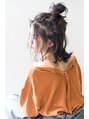 頭の上の方でざっくりまとめたお団子が特徴のハーフアップスタイルです☆おろす髪は波ウェーブにして、顔周りには産毛のような後れ毛を沢山落とすのがポイント!!