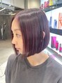 シンプルな切りっぱなしボブ。この秋おすすめのディープバイオレットでツヤとしっとりした雰囲気に!夏の紫外線などでダメージした髪やハイトーンを繰り返した方におすすめです!
