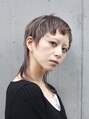 短い前髪と長さのある襟足の長短がポイント。全体のフォルムに長短をつける事で動きのあるウルフスタイルに。ヘアカラーはブリーチ後にロイヤルベールにピンクパールをミックスして深みを出しています。スタイリングはオイルジェリーを全体に馴染ませて。