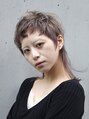 短い前髪と長さのある襟足の長短がポイント。全体のフォルムに長短をつける事で動きのあるウルフスタイルに。ヘアカラーはブリーチ後にロイヤルベールにピンクパールをミックスして深みを出しています。スタイリングはオイルジェリーを全体に馴染ませて。