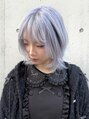 ハイトーンアイスブルーウルフカットブロンドグレージュボブ