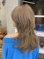 海外風レイヤーロングミディアムハッシュカットミルクティー