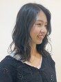 肩くらいの長さにカットして、全体の中間から毛先にカールをつけて動きを出しますカラーはイルミナカラーの暗めのアッシュグレーを入れて、暗さの中に透明感をアップさせるのがポイントです