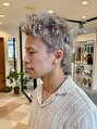 ハイトーンスパイキーショートスタイルです髪の毛を動かしてカッコよく決まる長さでカットし、カラーはハイトーンのホワイトベージュに。