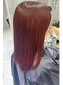 セミロングで暖色系のチェリーレッドにしたいけど、ブリーチは傷むし…と悩んでいるあなた。髪質改善しながら理想のカラーが叶います
