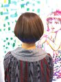 あご上の前上がりのボブ。表面はアッシュブラウンです。襟あしにラベンダーをその上にブルーをブレンドしてみました。