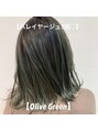 グラデーションカラー、ハイトーン、インナーカラー、バレイヤージュ、無造作カール、ダブルカラー、ミルクティーベージュ、オリーブカラー、オリーブベージュ、ラベンダーアッシュ、グレージュ、ハイバレ、エアータッチ、外国人風カラー、オリーブグリーン